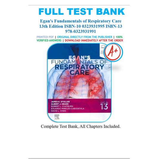 Test Bank For Fundamentals of Respiratory Care 13th Edition By James K. Stoller